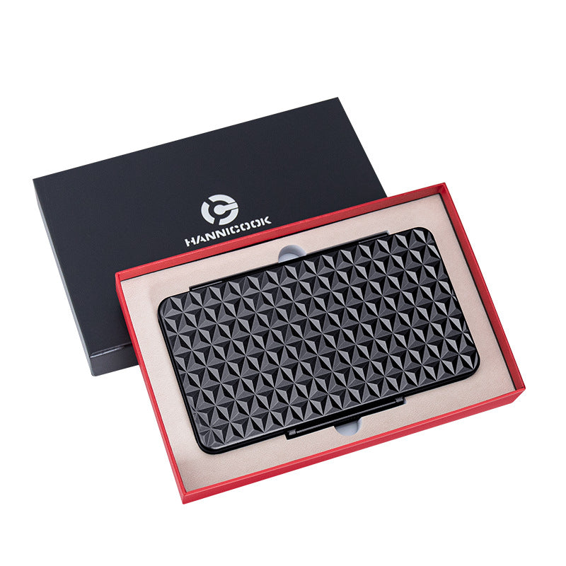 La conception de cet étui de voyage repose sur un principe de robustesse et de légèreté. Sa structure monobloc en aluminium aéronautique lui confère une résistance exceptionnelle aux chocs et à la pression, tout en conservant un poids de seulement 405 grammes. La fermeture, assurée par un joint d'étanchéité périphérique et des clips de verrouillage fermes, garantit une protection hermétique contre l'air et l'eau. À l'intérieur, une mousse haute densité est découpée en cinq emplacements individuels, immobilisant délicatement chaque vitole pour prévenir tout dommage durant le transport. Le couvercle intègre un hygromètre à aiguille pour un contrôle visuel constant de l'humidité relative, ainsi qu'un humidificateur compact et efficace. Avec une épaisseur de seulement 32 mm, cet écrin se glisse avec aisance dans une mallette ou un bagage.